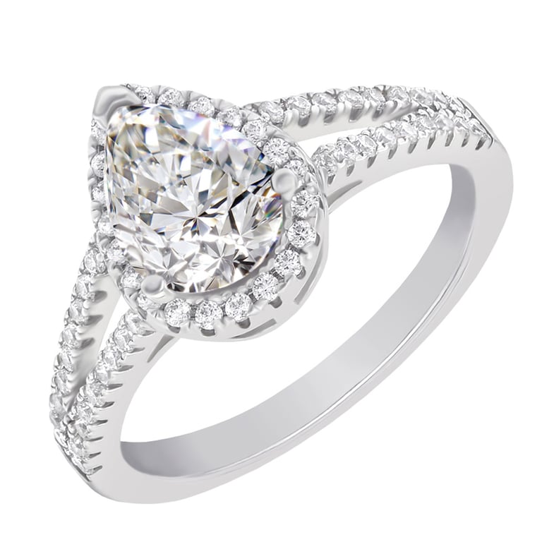 Verlobungsring im Halostil mit Tropfendiamant Perlote