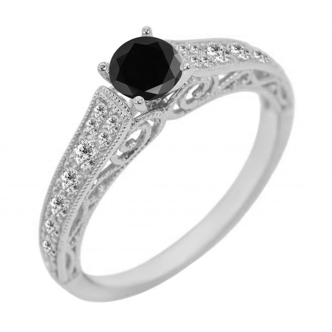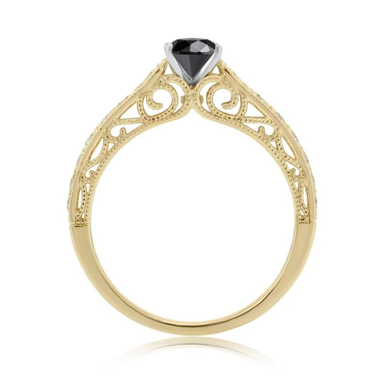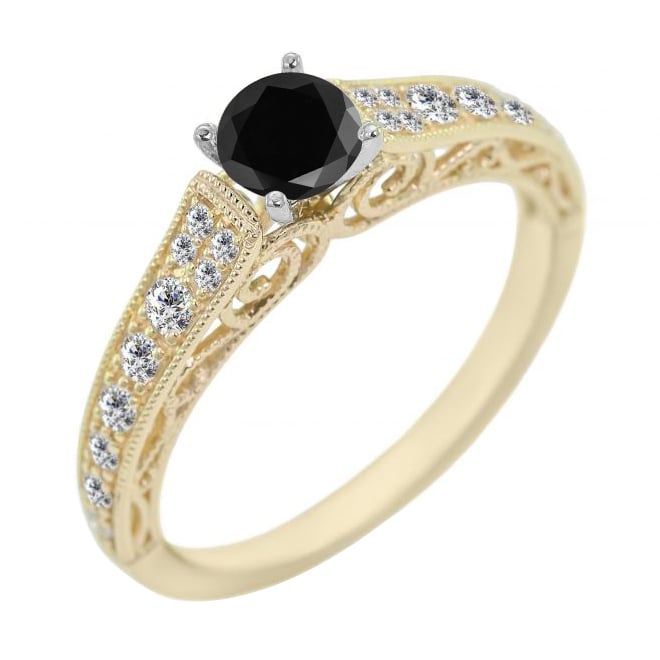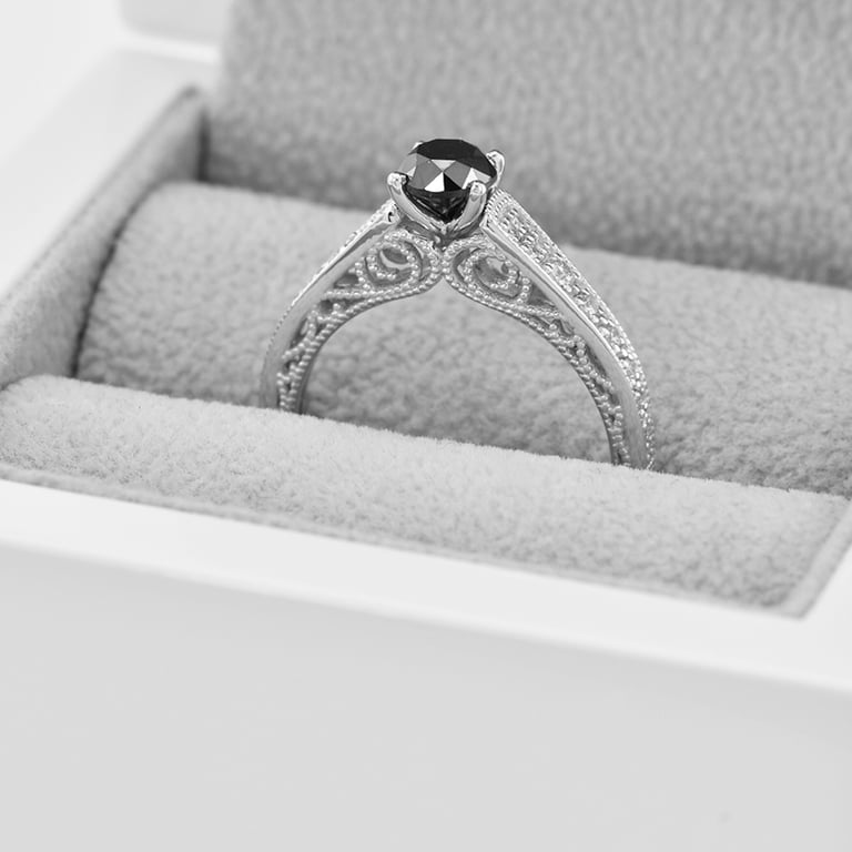 Verlobungsring im Vintage-Stil mit schwarzem Diamant Keran
