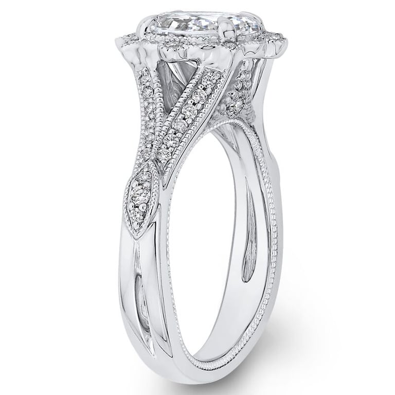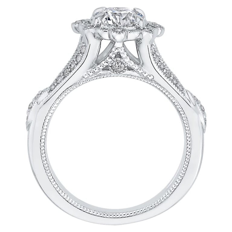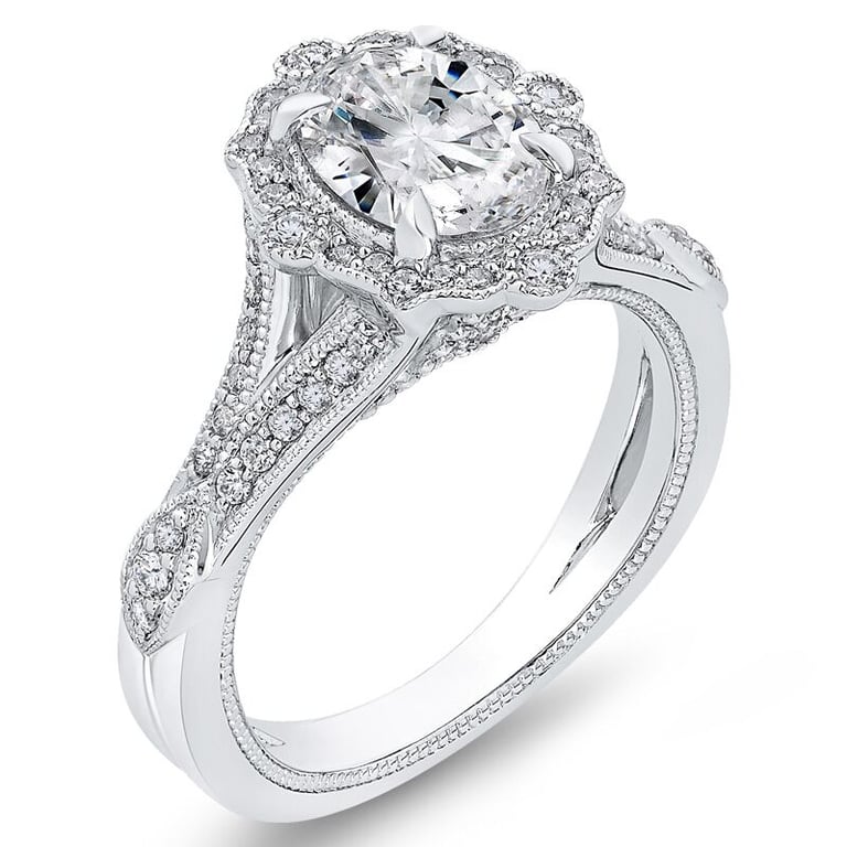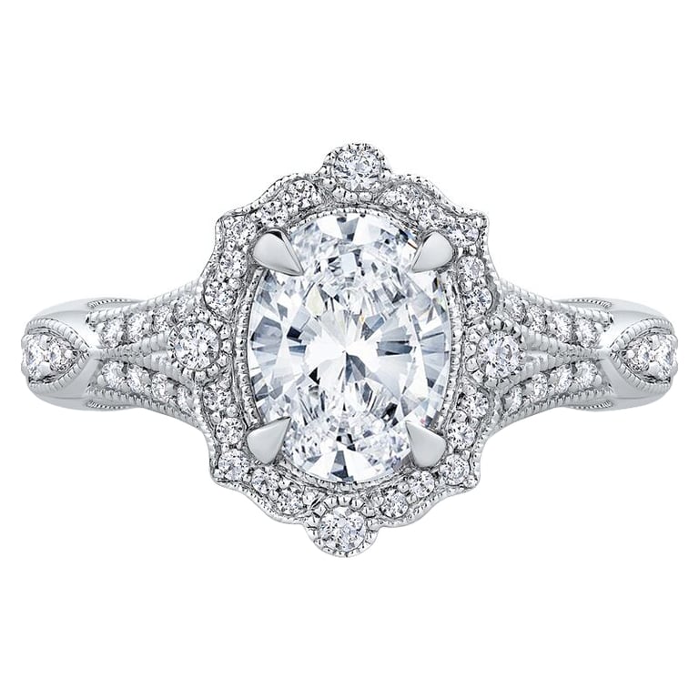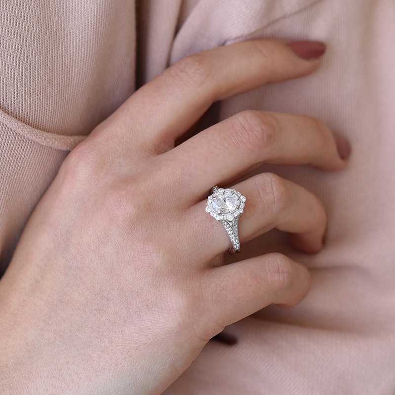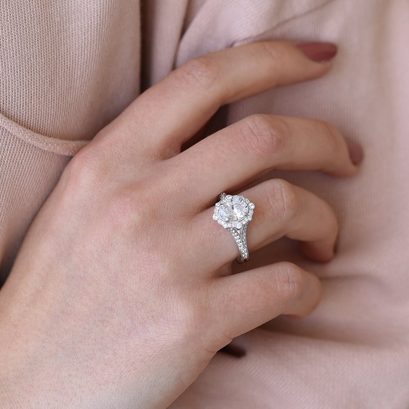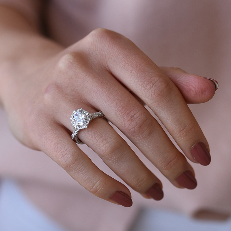 • dieser romantische Verlobungsring im Vintagestil hat einen ovalen Diamant als Herzstück