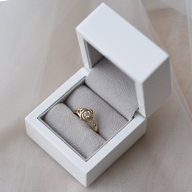• romantischer Verlobungsring in Form einer meisterhaft verarbeiteten Rose