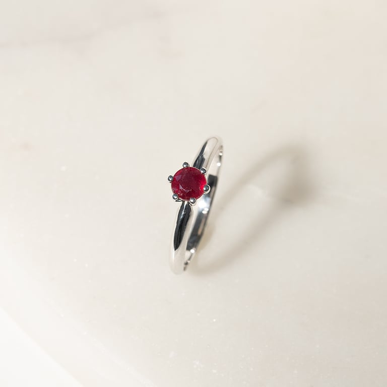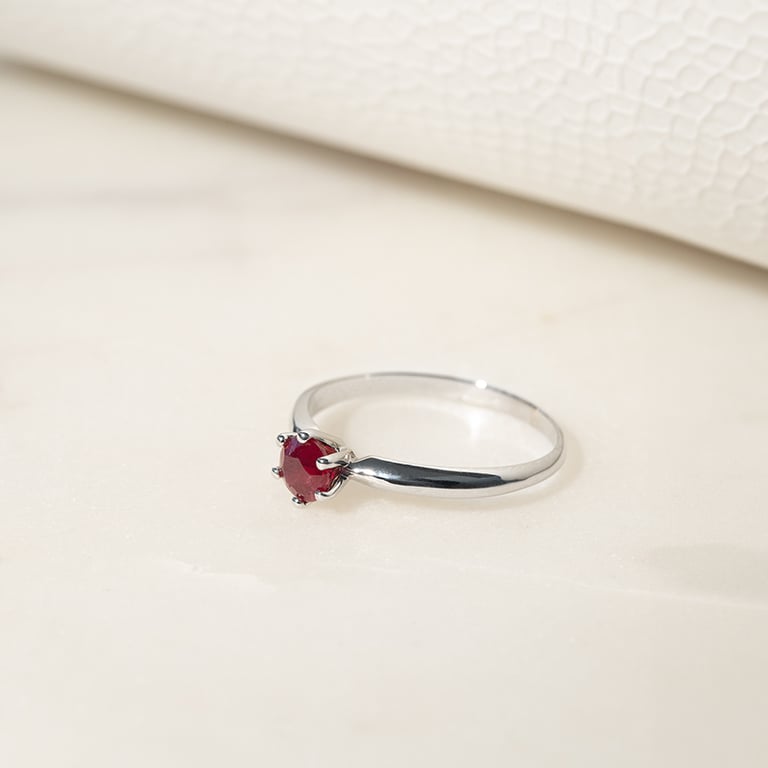 • der Ring in Weißgold unterstreicht die karminrote Farbe des Rubins als Solitair perfekt