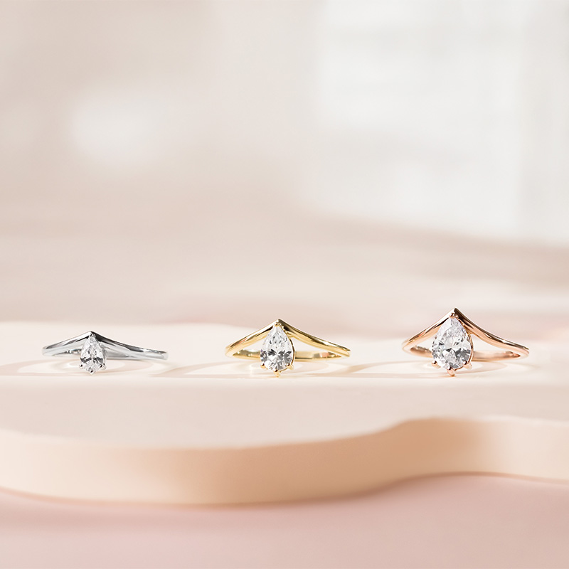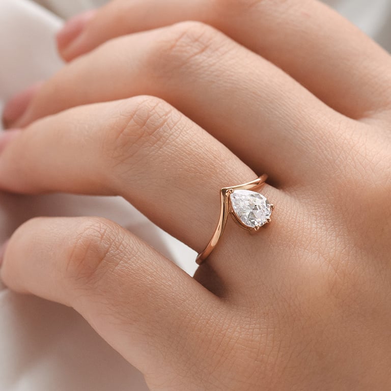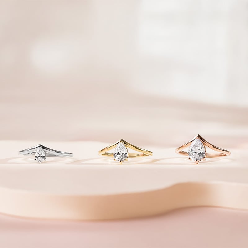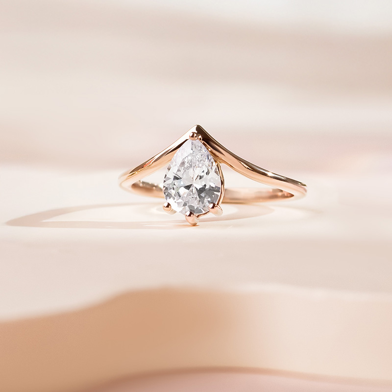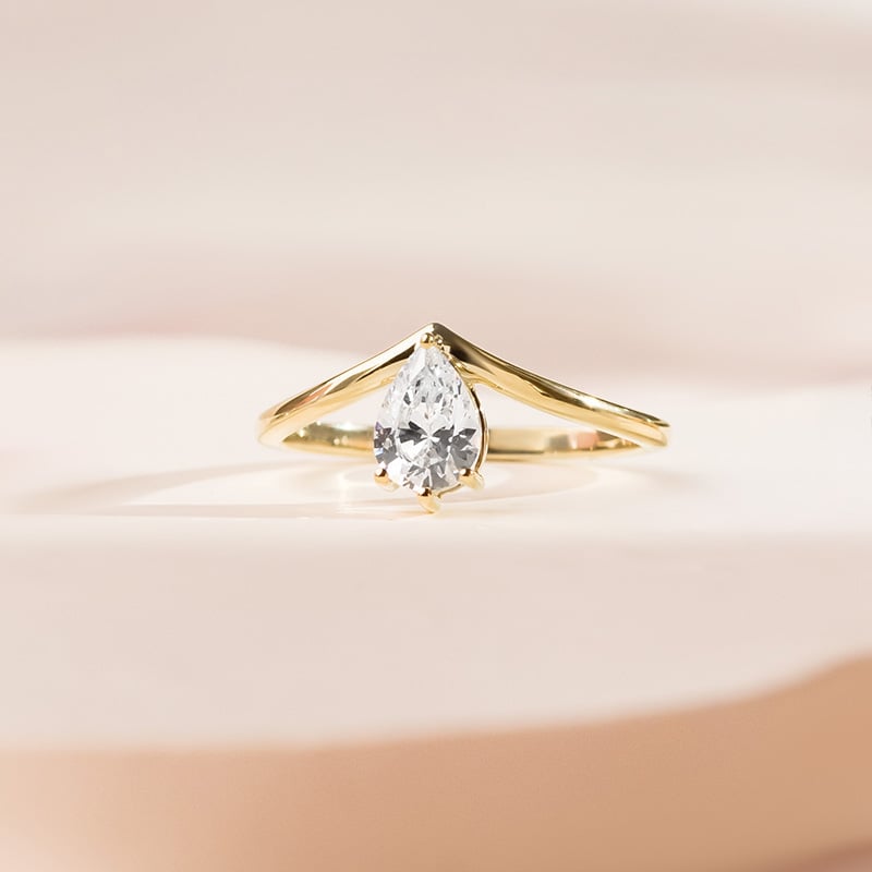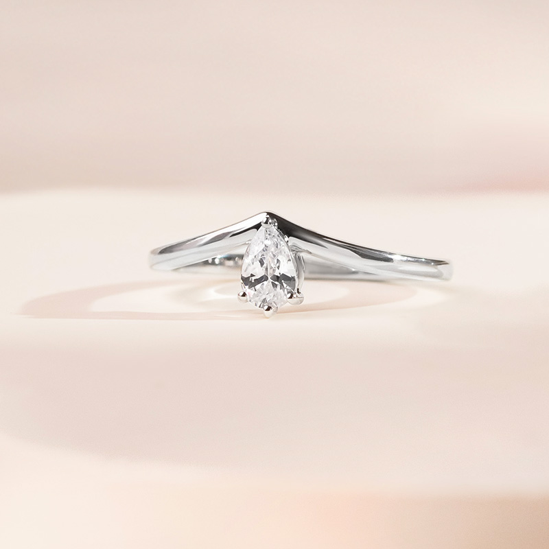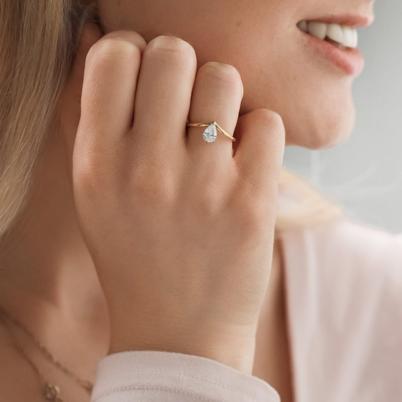 Verlobungsring in V-Form mit tropfenförmigem Moissaniten Ingrid