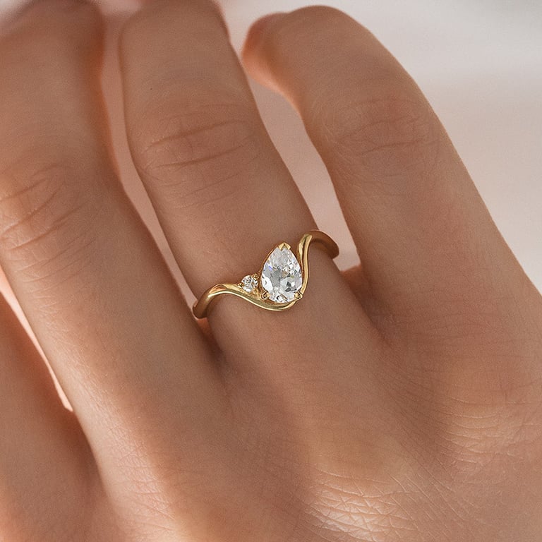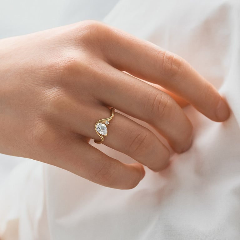 Verlobungsring in Wellenform mit einem tropfenförmigen Diamanten Mirjana