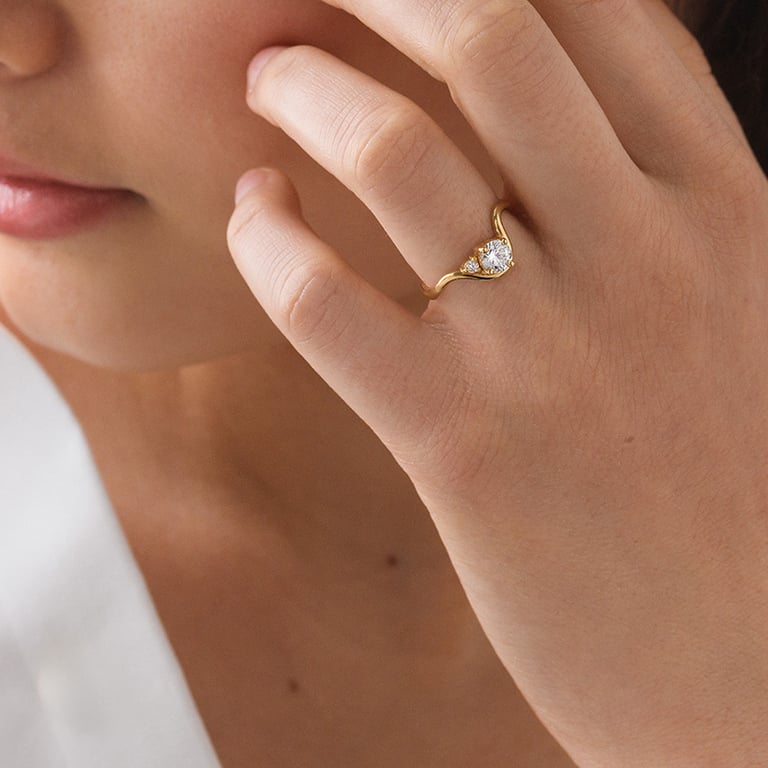 Verlobungsring in Wellenform mit rundem Diamant Debora