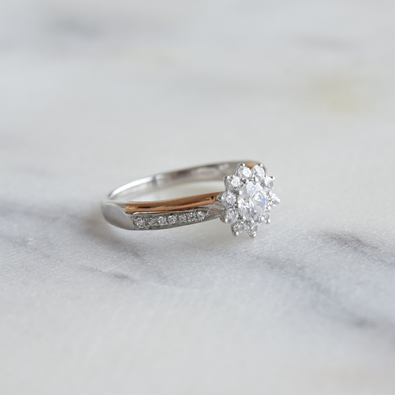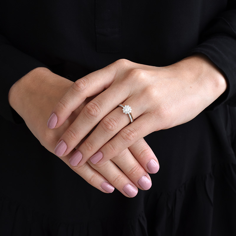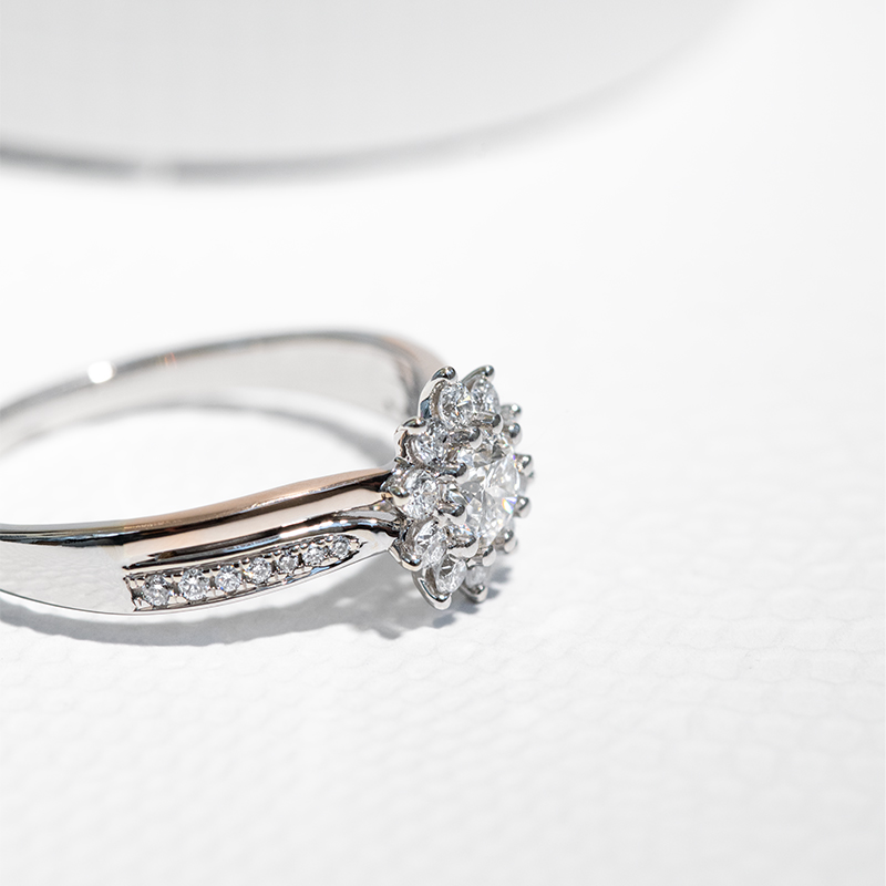 • im Mittelpunkt der Diamanten-Blume sitzt der einzigartige Diamant mit GIA-Zertifikat