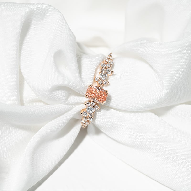 • er wird von einem IGI-zertifizierten Lab Grown Diamanten in einem wunderschönen Pfirsichton dominiert