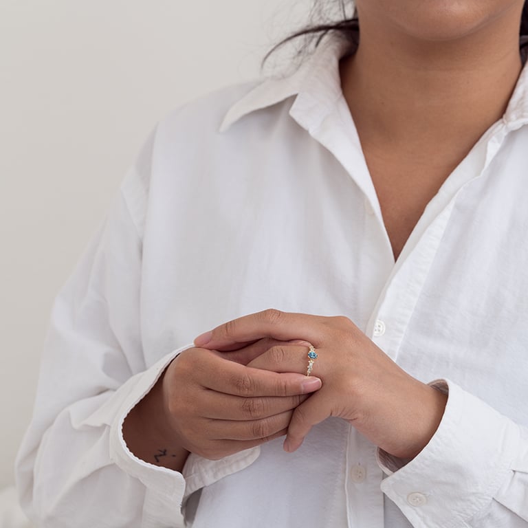 Wir stellen Schmuck aus im Labor gezüchteten Diamanten und recyceltem Gold, Silber oder Platin her. Wir wollen damit ein Zeichen setzen, dass Ethik und Nachhaltigkeit mit Luxus Hand in Hand gehen können.