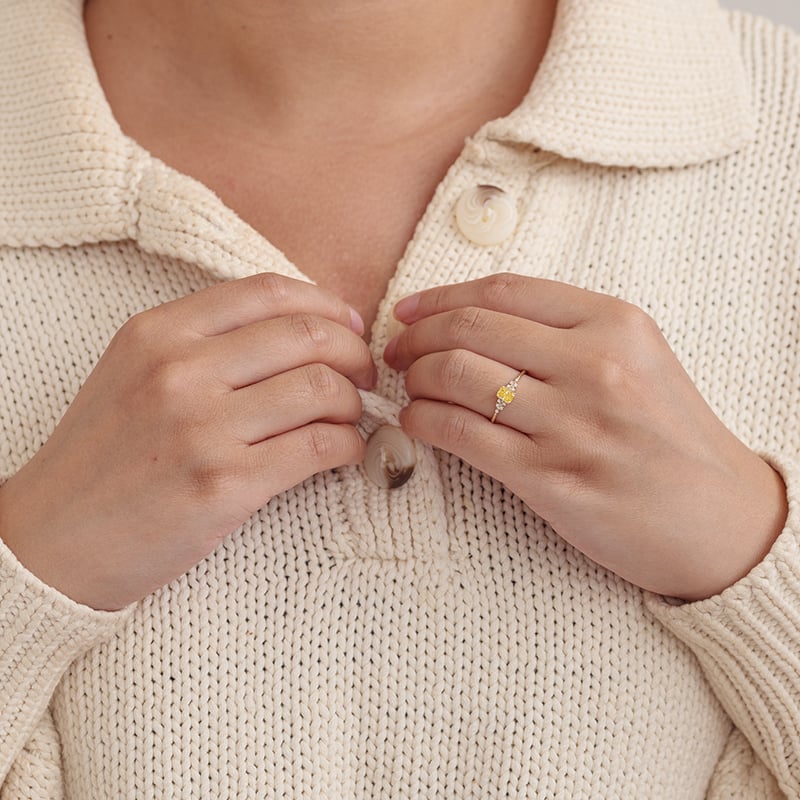 • er wird von einem leuchtend gelben Lab Grown Diamanten dominiert, der von dem Internationalen Gemmologischen Institut zertifiziert wurde
