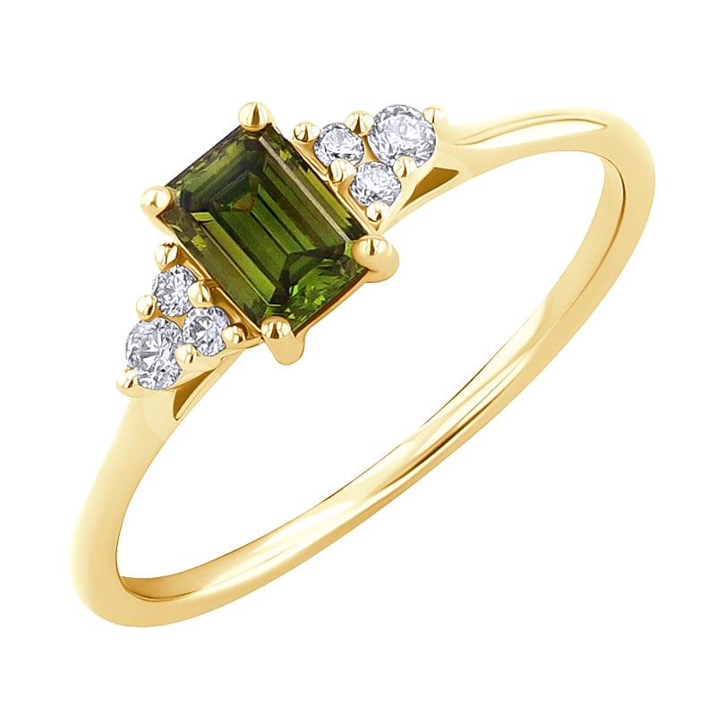 • er wird von einem perfekten Lab Grown Diamanten in Emerald-Form in einem eleganten Grünton dominiert