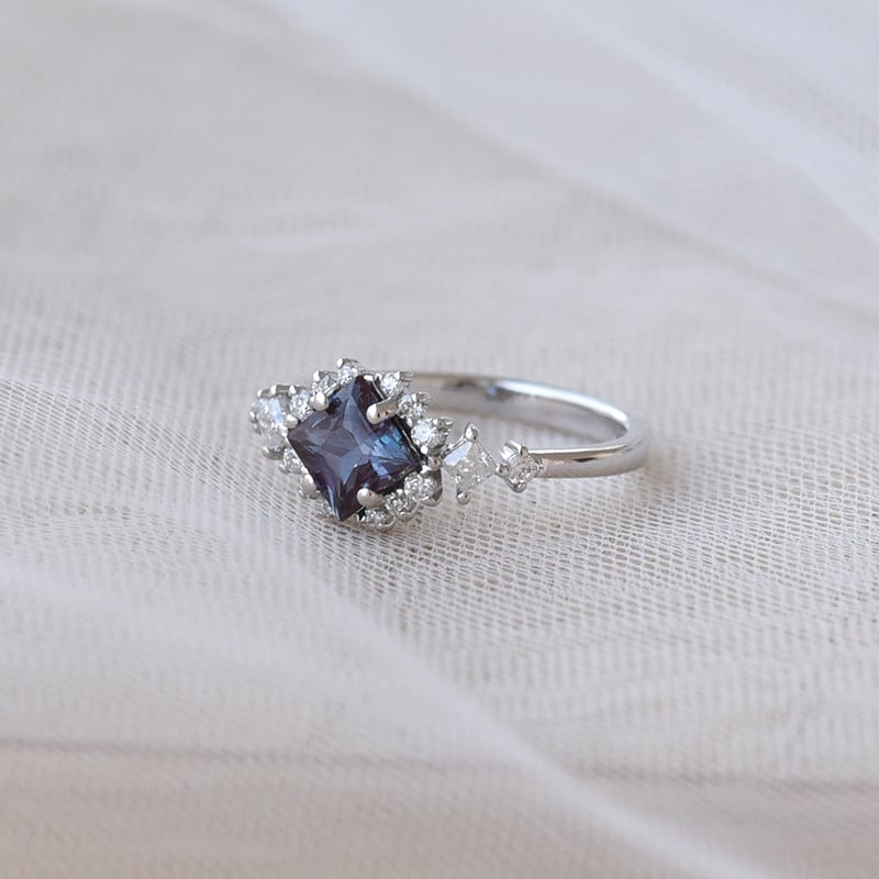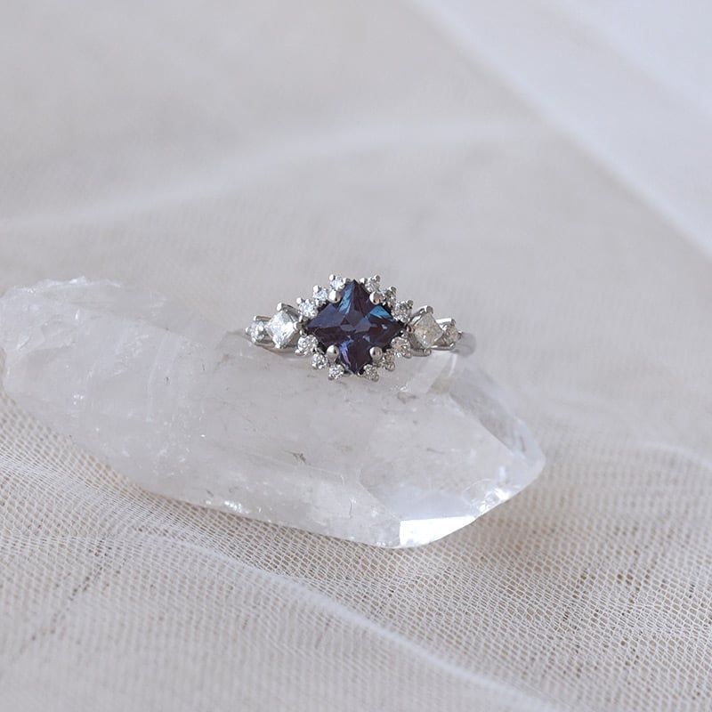 Verlobungsring mit Alexandrit und Moissaniten Medrie