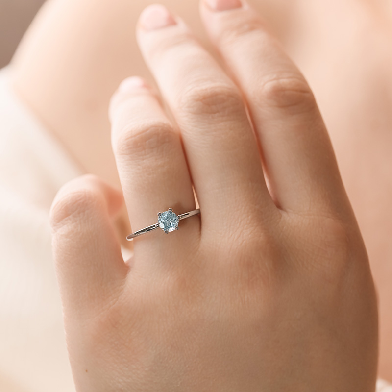 • zarter Verlobungsring mit Aquamarin in der Farbe des klaren Meeres