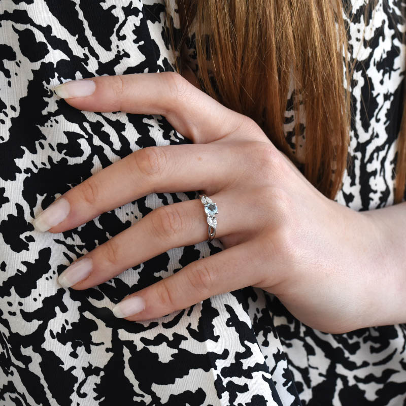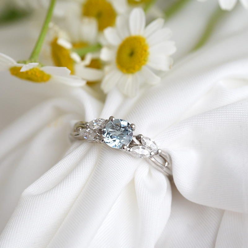 Verlobungsring mit Aquamarin und Moissaniten Halym