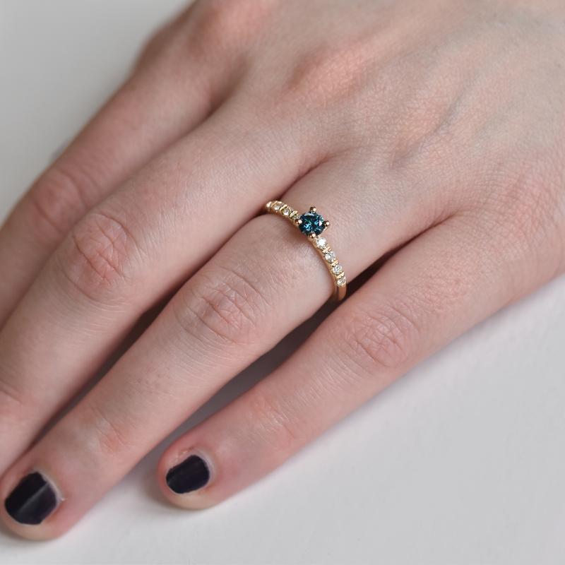 • der blaue Diamant wird Sie beide immer an ihre Freudentränen bei Ihrem Antrag erinnern