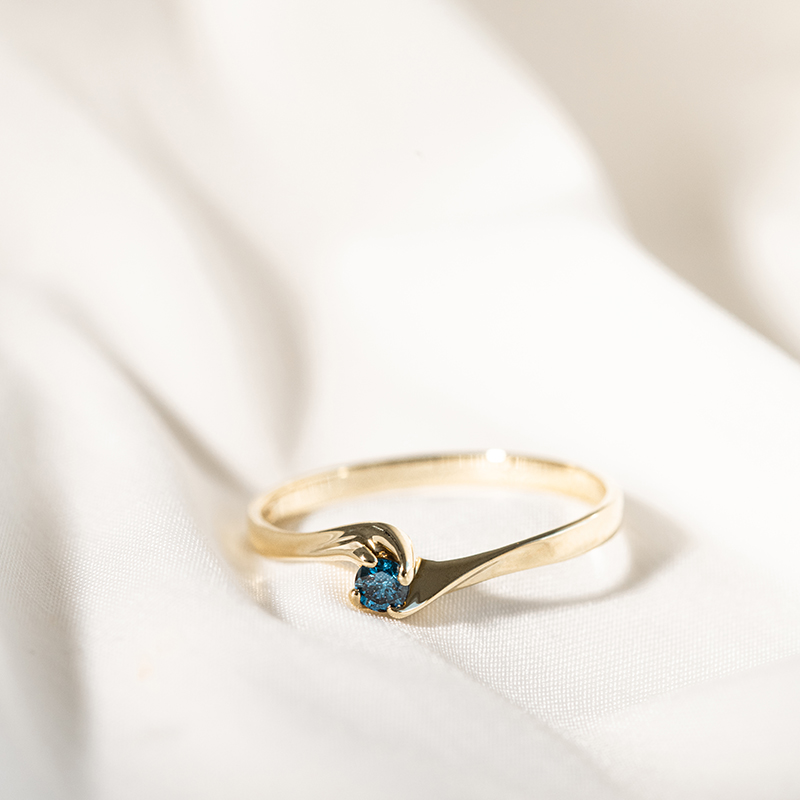 • der Ring mit einem meerblauen Diamanten und geschwungener Form ist das perfekte Symbol dafür