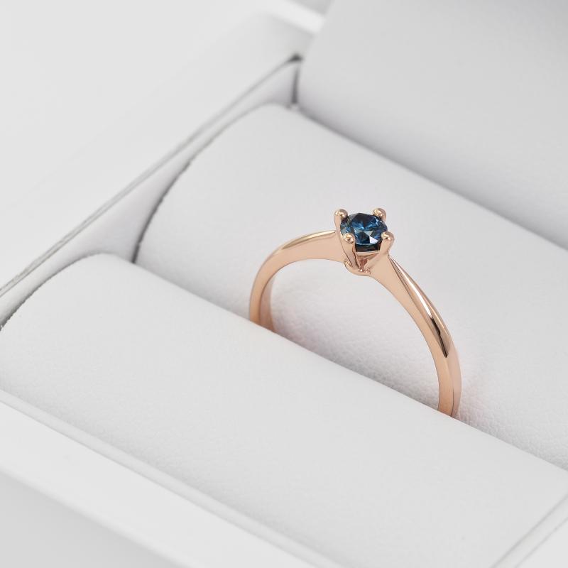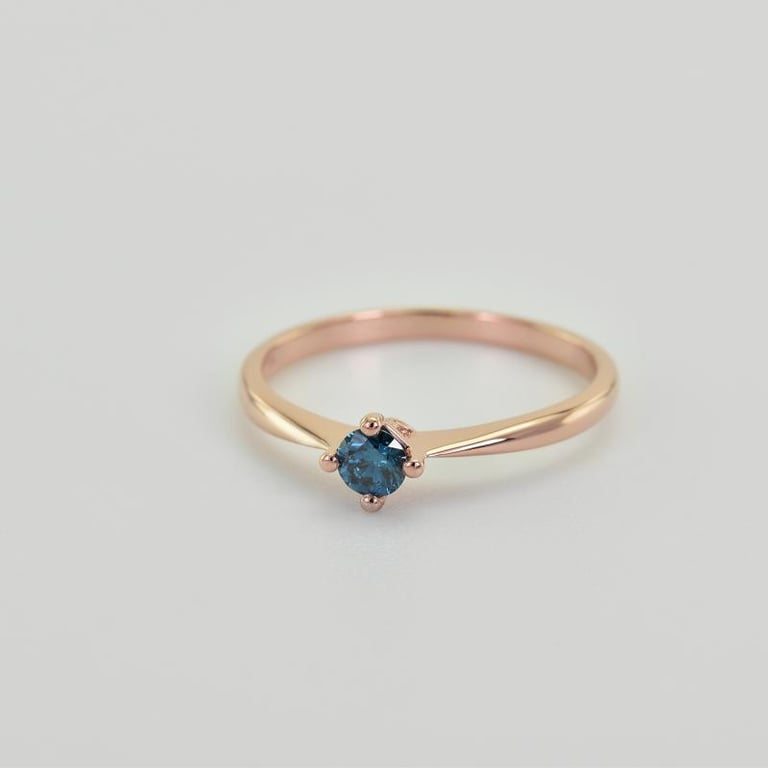 • der Ring hat einen exklusiven blauen Diamanten in einer schlichten Krappenfassung