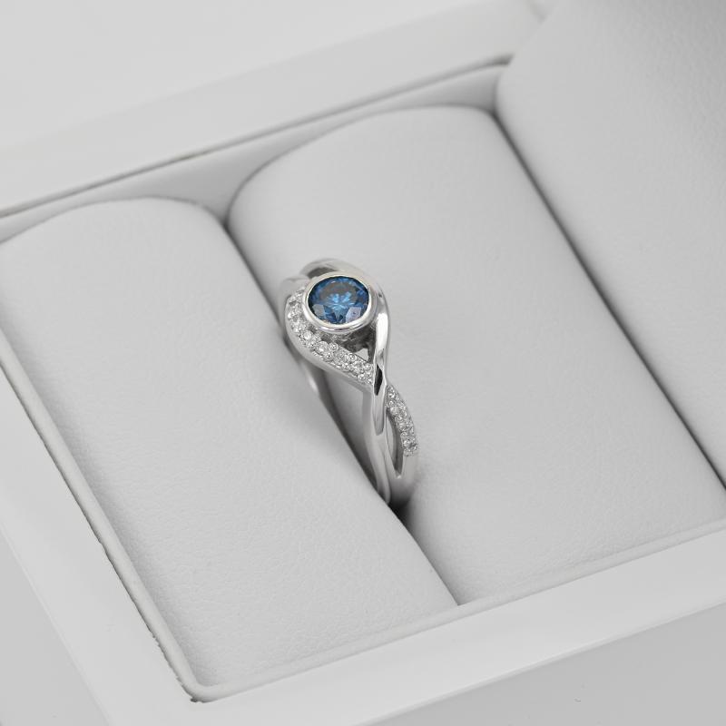 Verlobungsring mit blauem Diamant und weißen Diamanten Milia