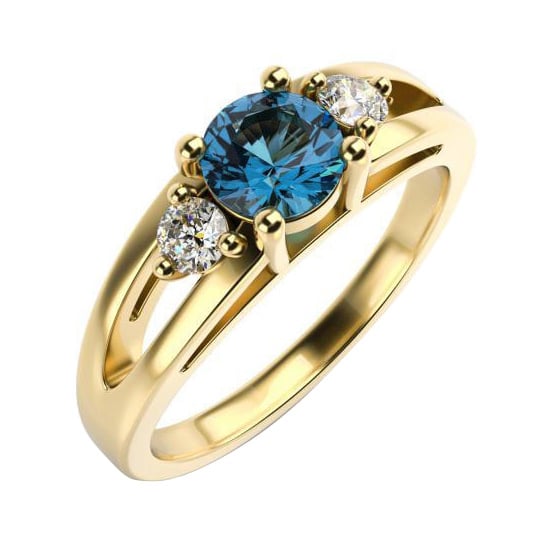• sehr klassisch wirkender Verlobungsring mit einem runden meerblauen Diamanten in der Mitte