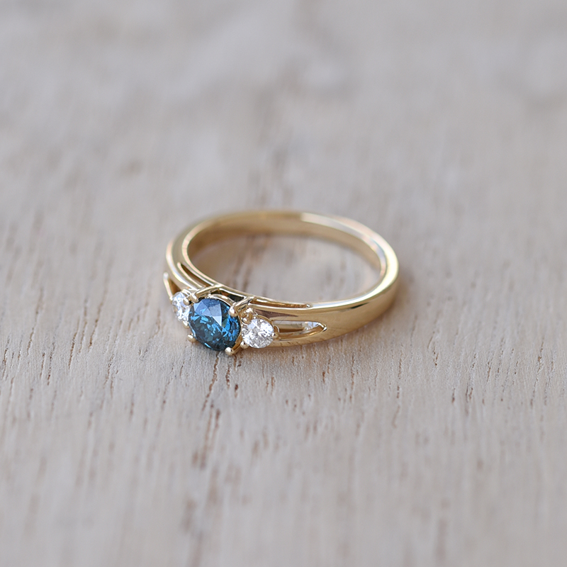 Verlobungsring mit blauem Diamant und weißen Diamanten Wimor