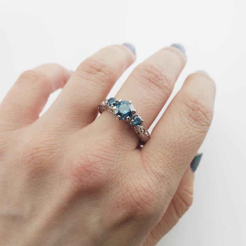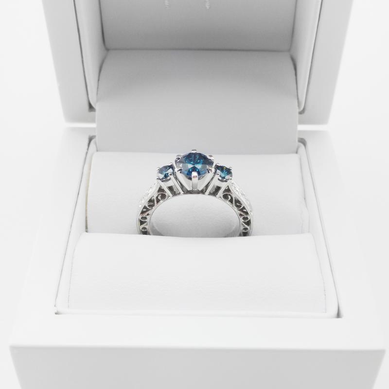 • Verlobungsring in Weißgold mit drei atemberaubenden blauen Diamanten