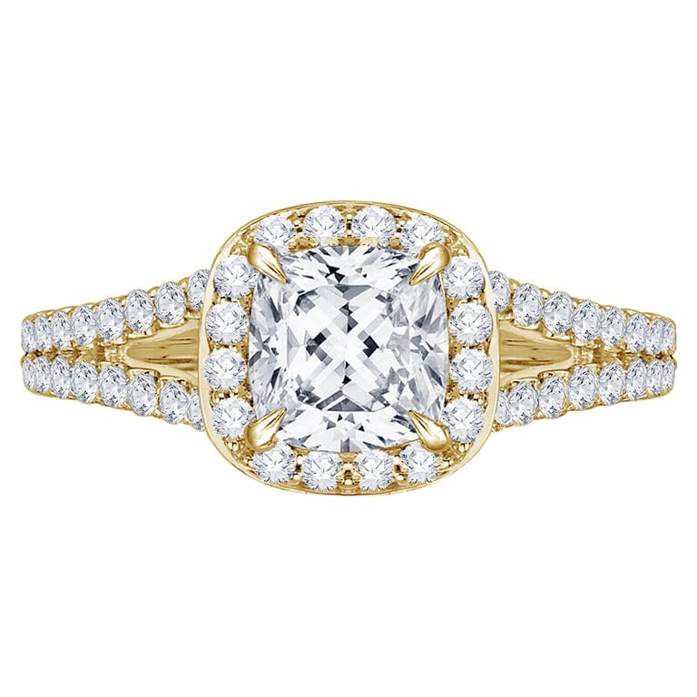 • die Ringschiene sowie das Halo der Fassung sind mit unzähligen Diamanten besetzt