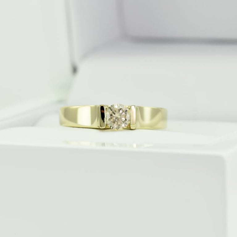• ein Solitärring in Gold mit einer Spannfassung ergibt einen minimalistischen Blickfang