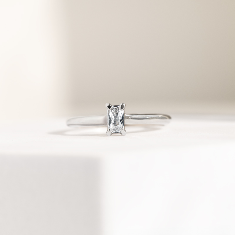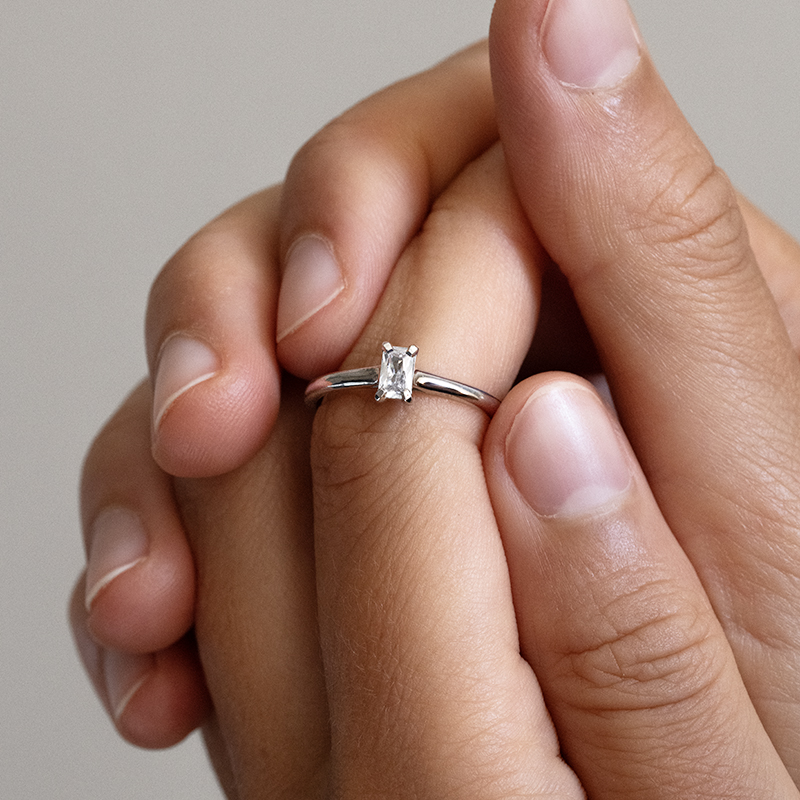 Verlobungsring mit Diamant im Smaragdschliff Bukkha
