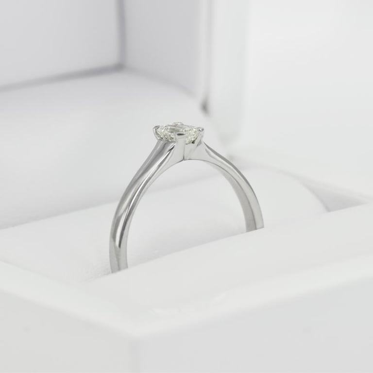 • der eckige Diamant wird sicher von einer Krappenfassung eingeschlossen, die auch die Ecken schützt