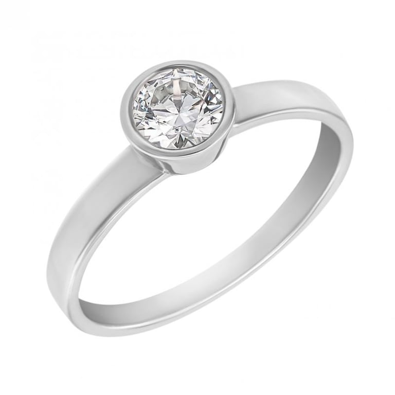 • dieser Ring im Solitärstil hat eine prägnante Bezelfassung