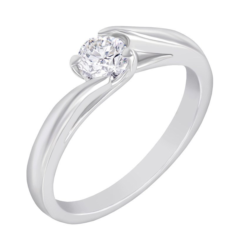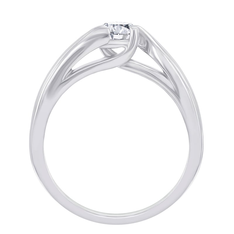 • ein raffiniert aufgespaltener Ring umschließt einen funkelnden runden Diamanten
