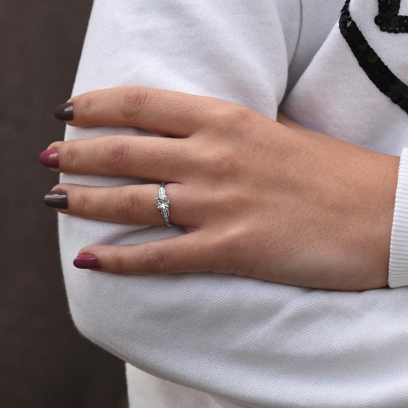 • dieser Ring aus Weißgold mit verschiedenen großen Diamanten hat diesen Moment festgehalten