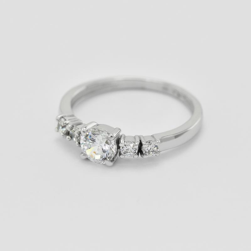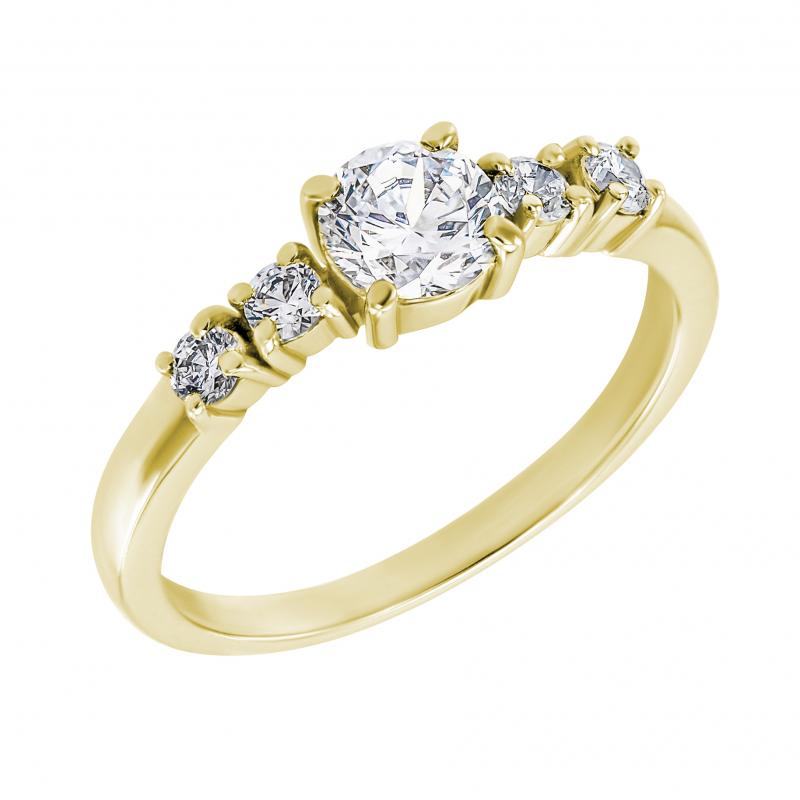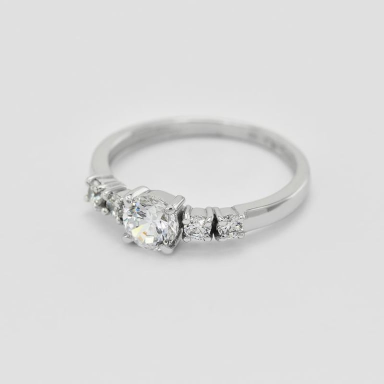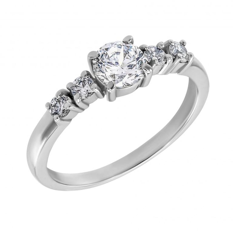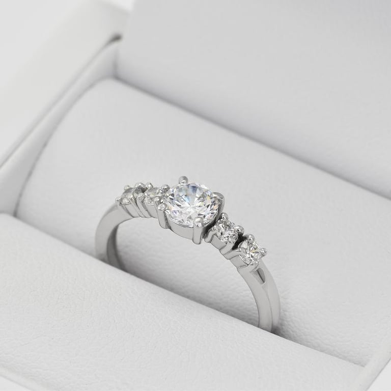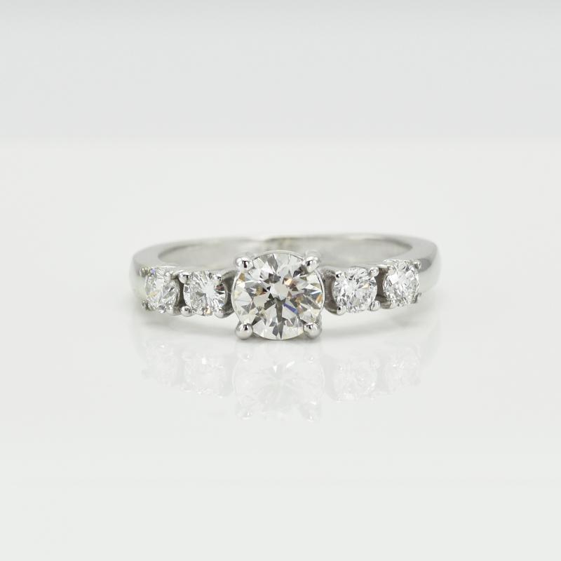 • dieser Ring mit fünf runden Diamanten ist ein zeitloser Klassiker