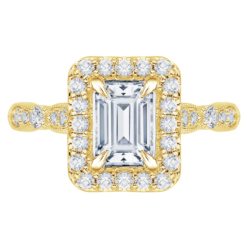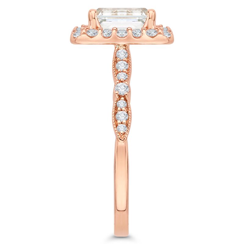 • das Design im Vintagestil hat einen Diamanten im Smaragdschliff im Fokus