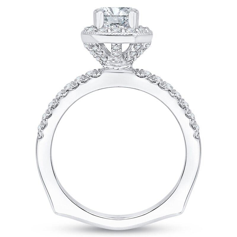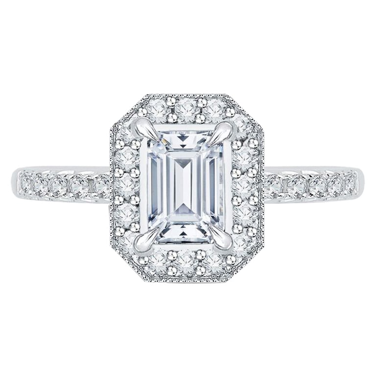 • das eckige Halo wird hier mit Diamanten und Weißgold gestaltet wie auch die Ringschiene, die Farbe des Goldes oder auch Platin ist wählbar