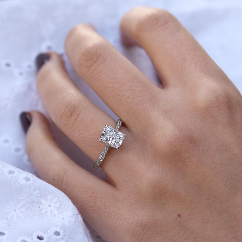 • ein eckiger Diamant im Smaragdschliff zieht bei diesem Verlobungsring die Blicke auf sich