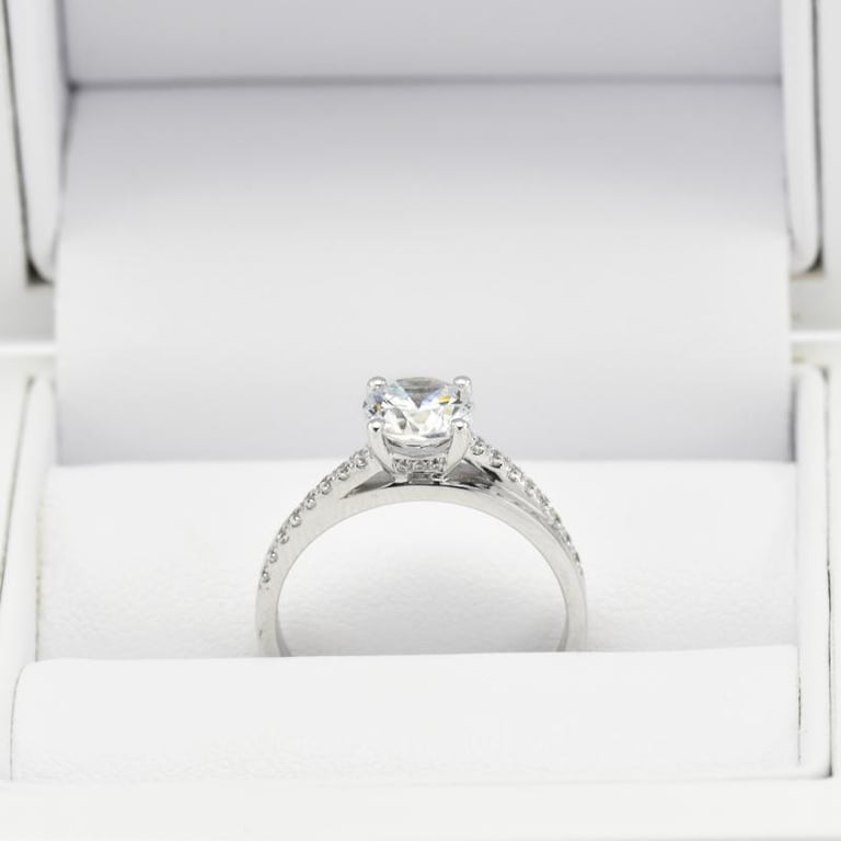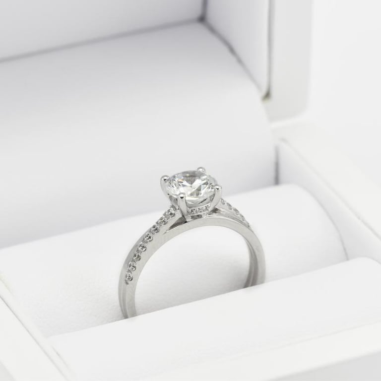 • der perfekt geformte Ring ist mit 30 seitlichen Diamanten geschmückt