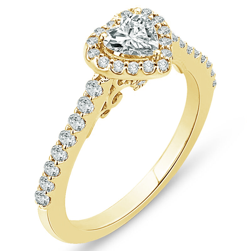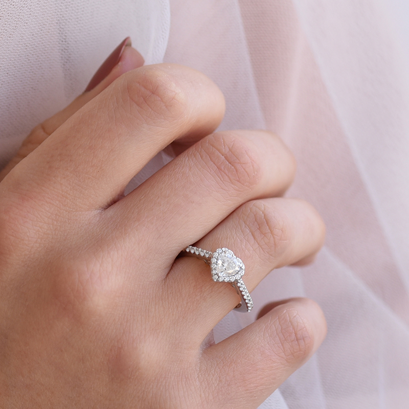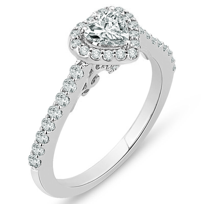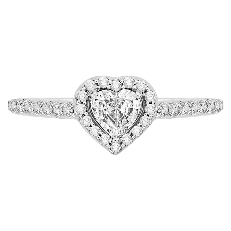 • den Ring aus Weißgold mit einem Diamantbesatz krönt ein 0.84 kt Diamant in Herzform