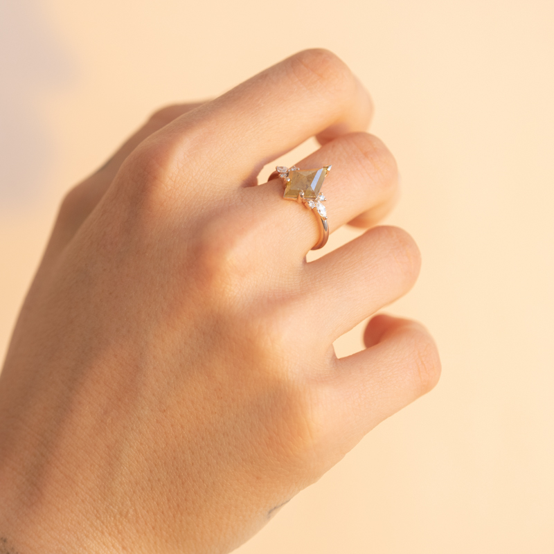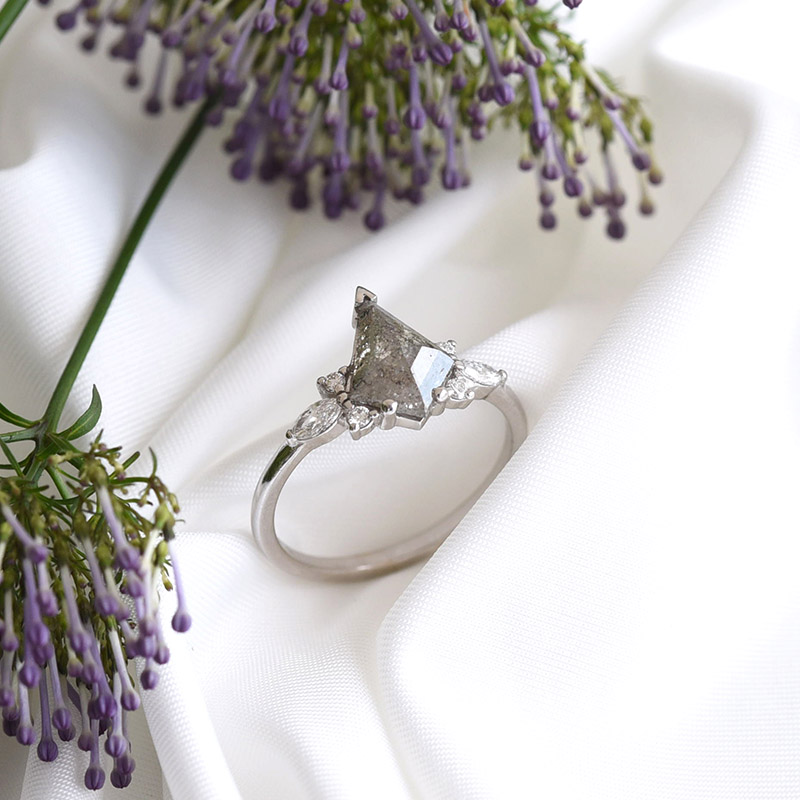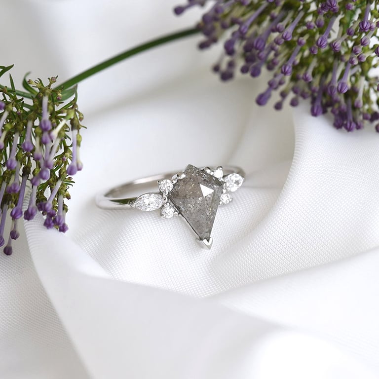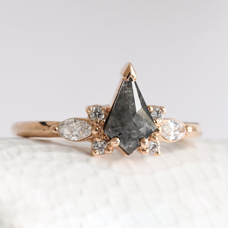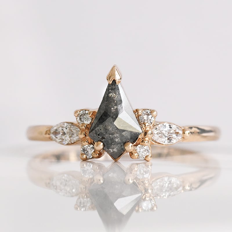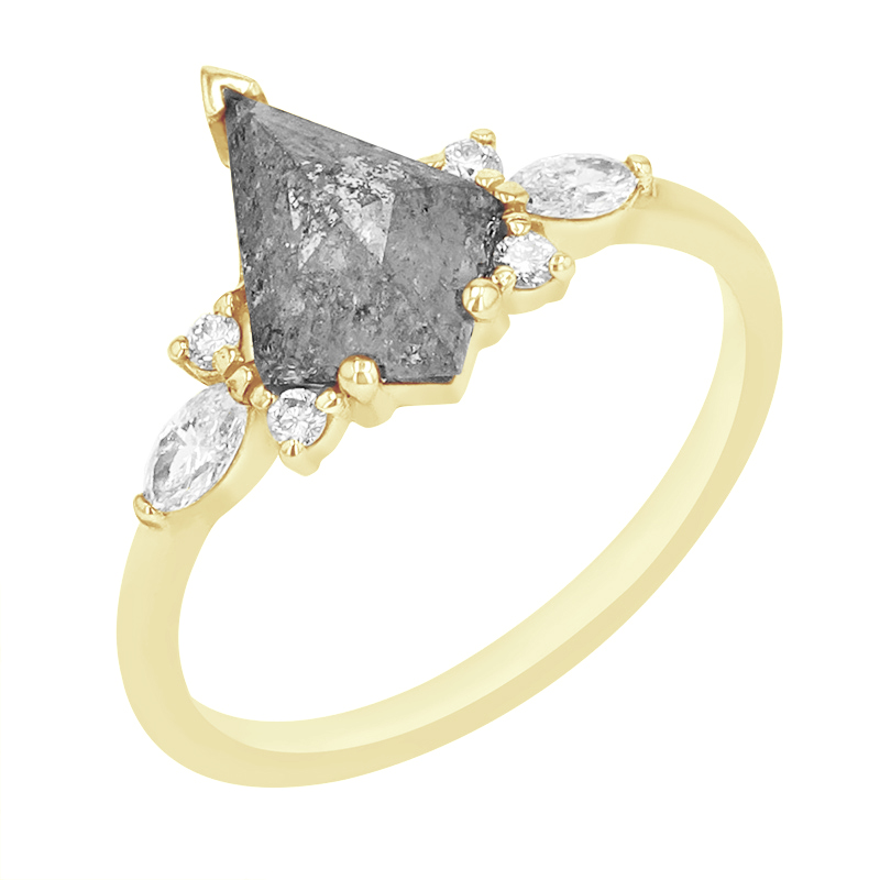 Verlobungsring mit einem grauen Salt and Pepper Diamanten in Kite-Form Isabela