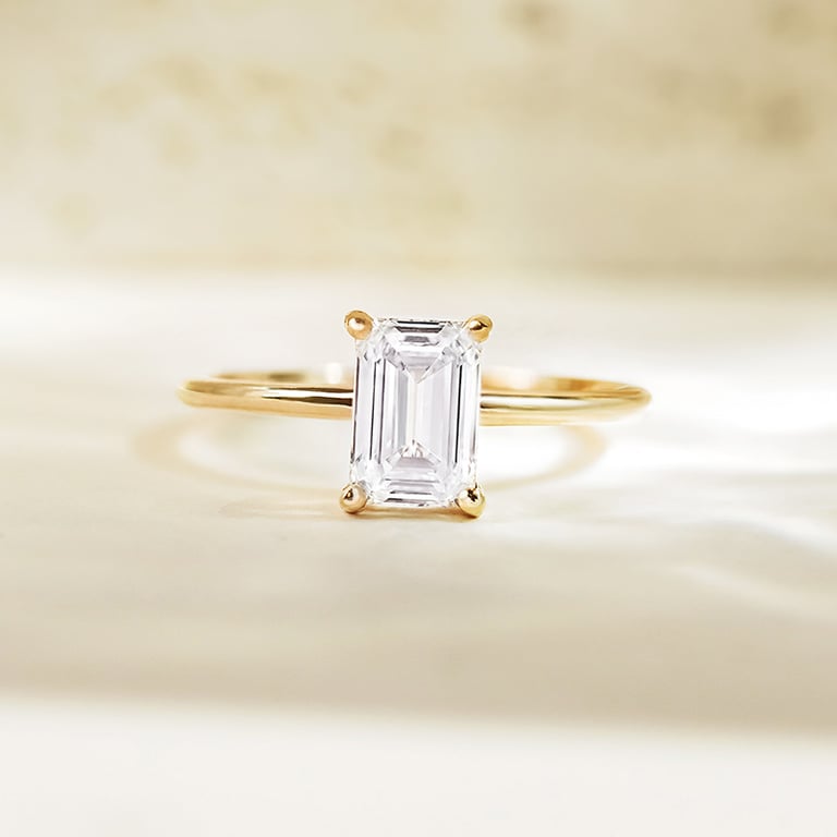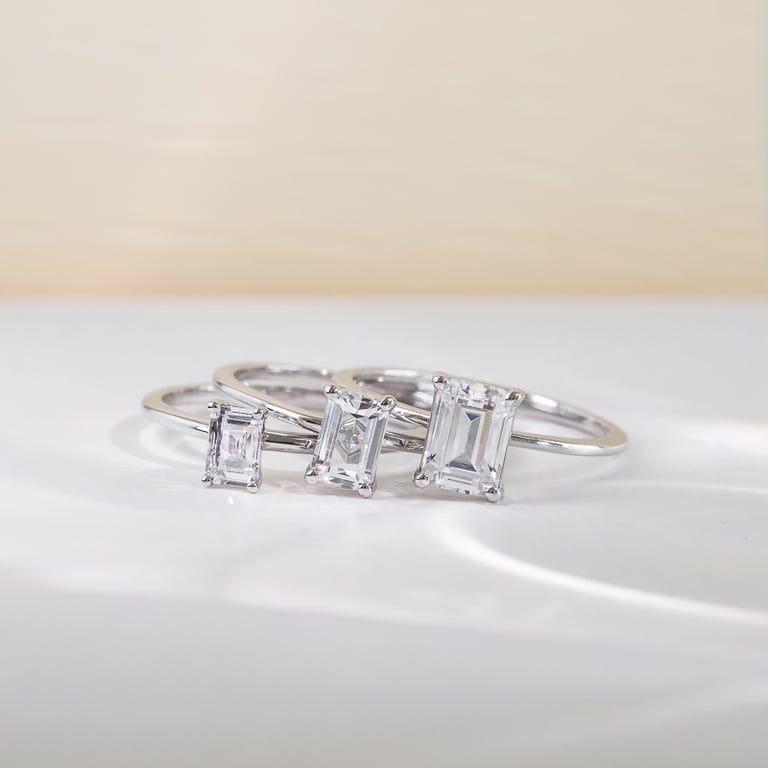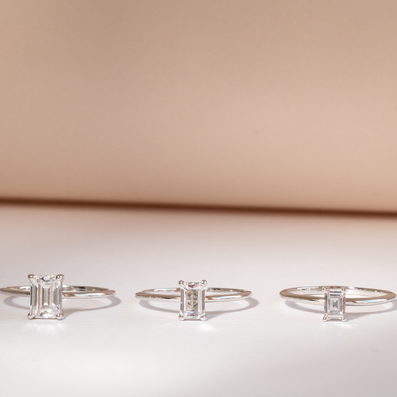 Verlobungsring mit einem Moissaniten in Emerald-Form mit Auswahl der Größe Olson