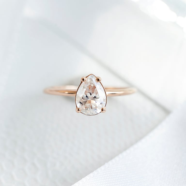 Verlobungsring mit einem Moissaniten in Pear-Form mit Auswahl der Größe North