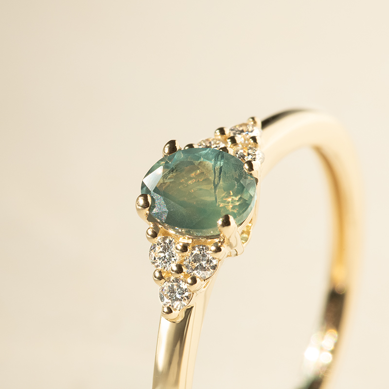• bezaubernder Verlobungsring, dessen Einzigartigkeit auf dem grünen natürlichen Alexandrit beruht