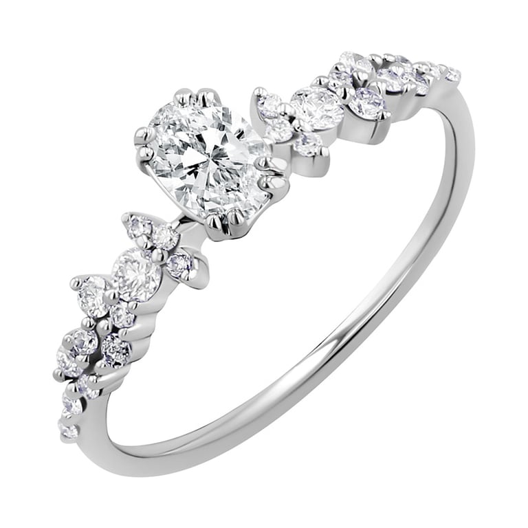 • raffinierter Verlobungsring mit einem ovalen, im Labor gezüchteten Diamanten Ihrer Wahl