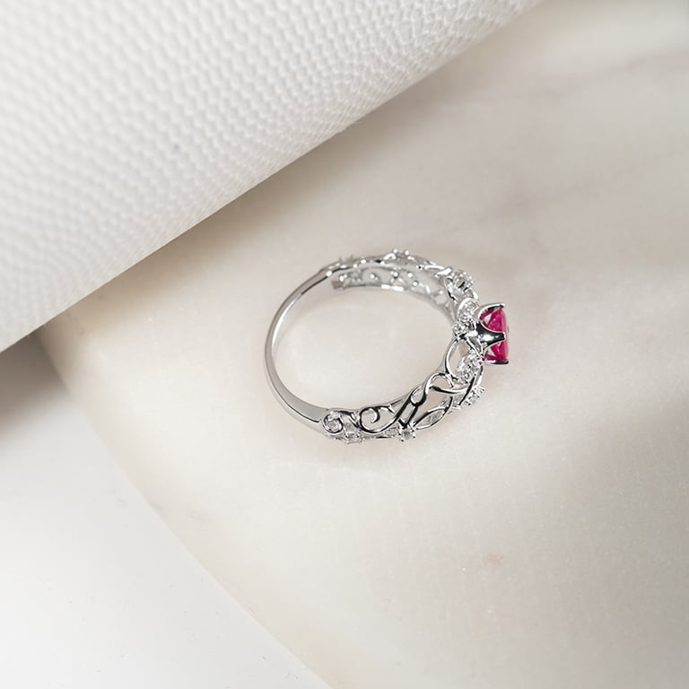 • ein Modell mit einem Edelstein in der Farbe der Liebe, das Ihre Verlobung perfekt besiegeln wird