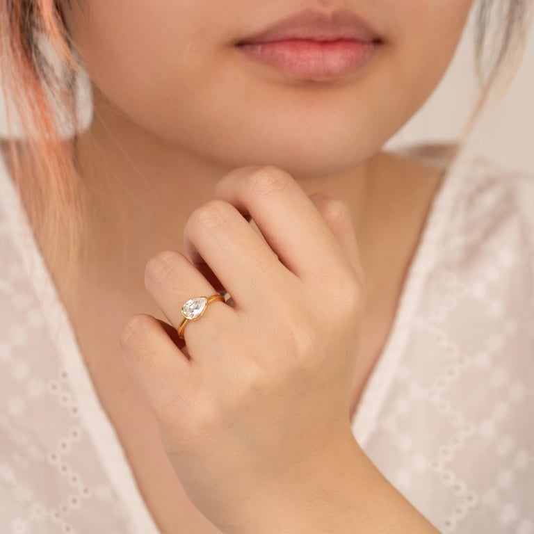 Minimalistischer Goldring mit einem Lab Grown Diamanten in Birnenform Valentin