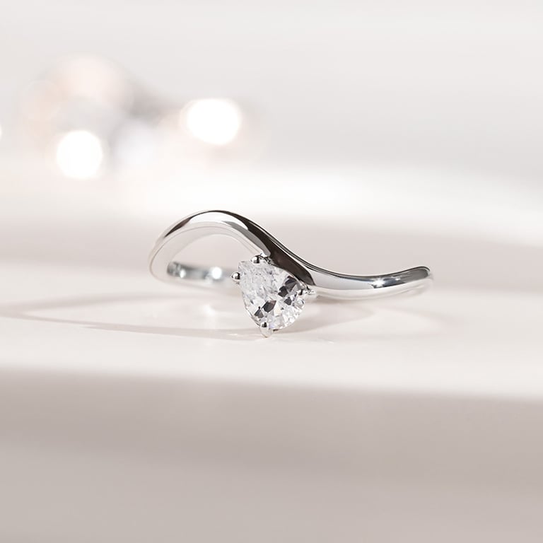• dominiert von einem einzelnen funkelnden, tropfenförmigen Lab Grown Diamanten