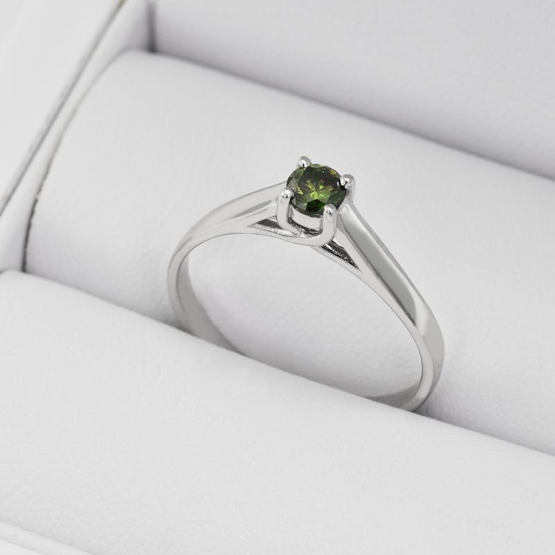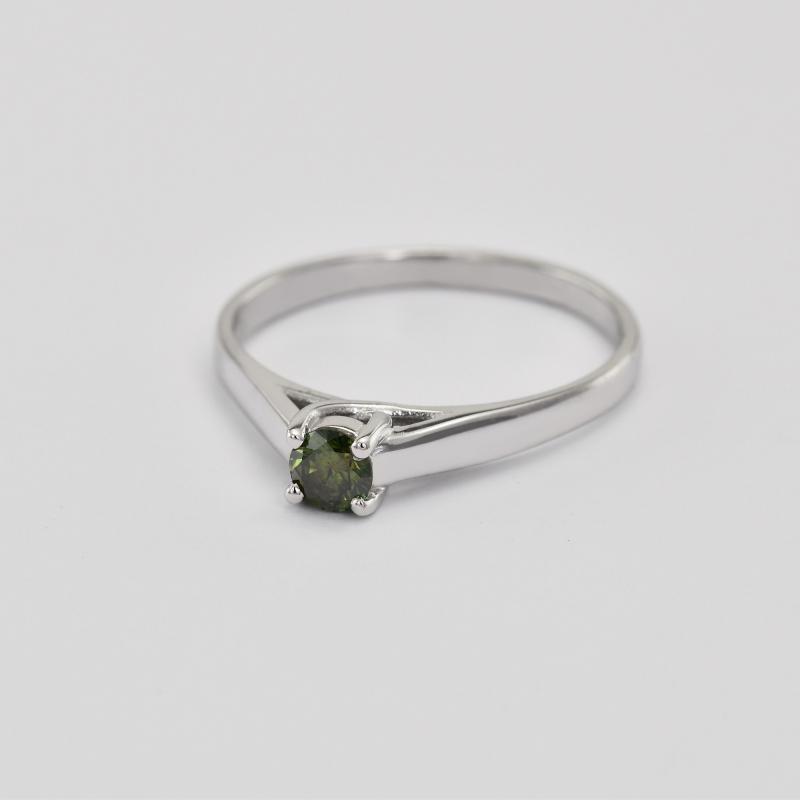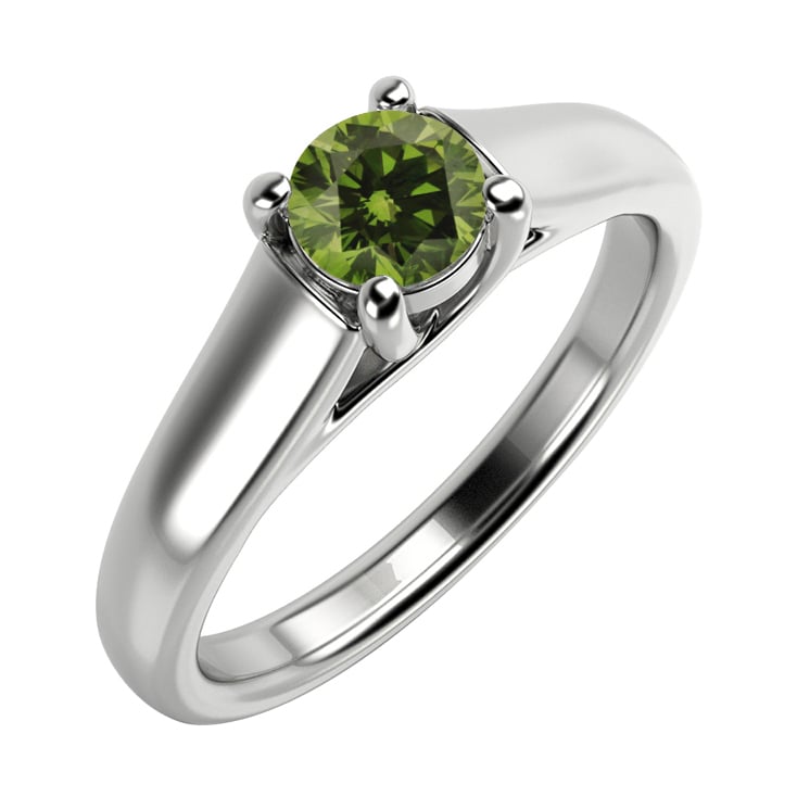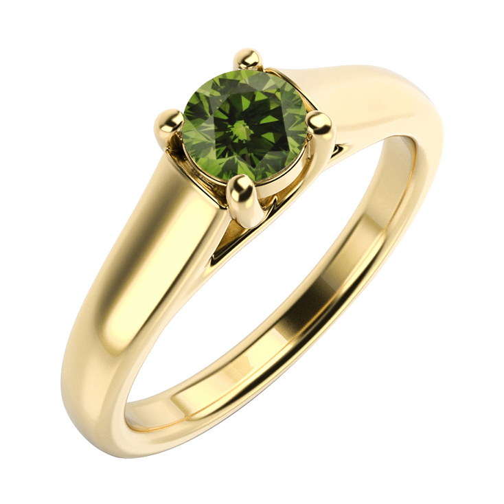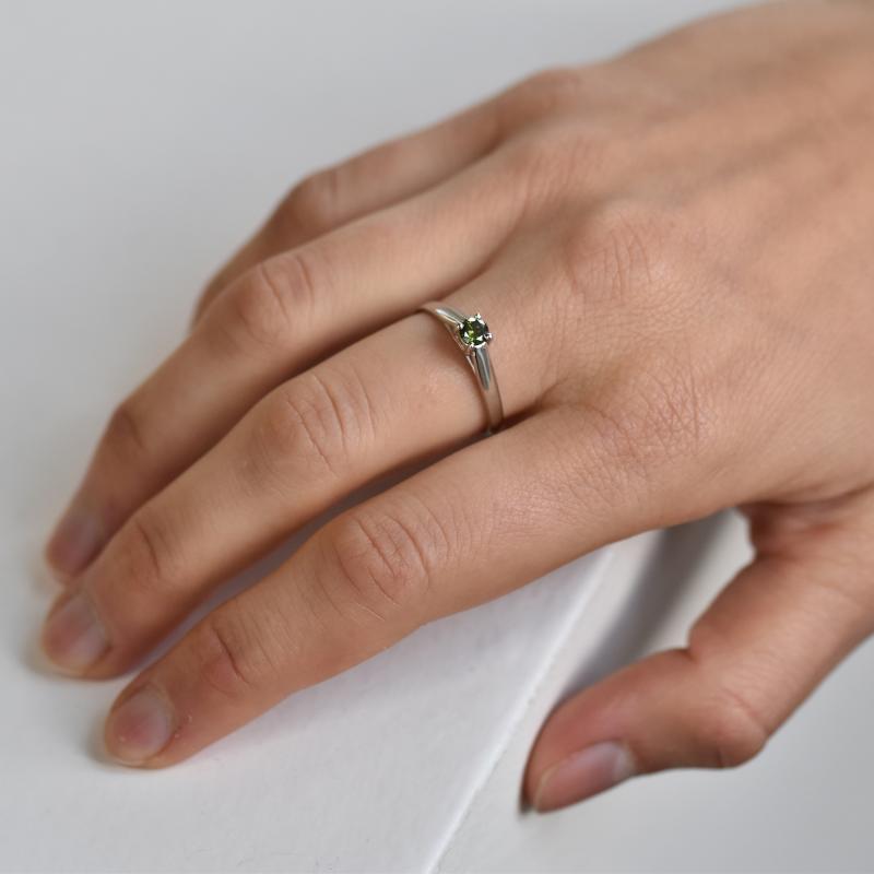 • ein klassisch anmutender Verlobungsring mit einem wunderschönen grünen Diamanten, der an Wald und Wiesen erinnert