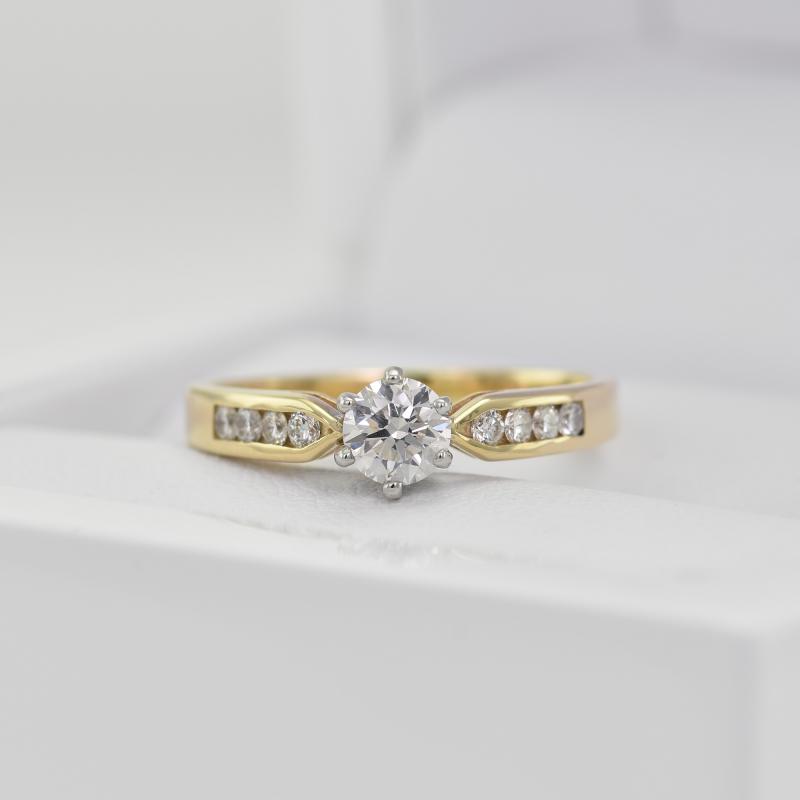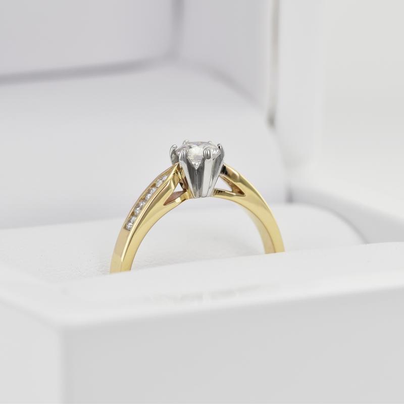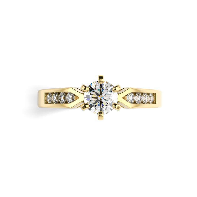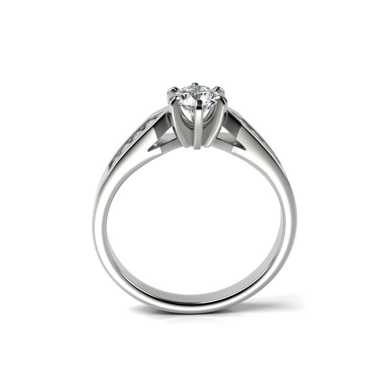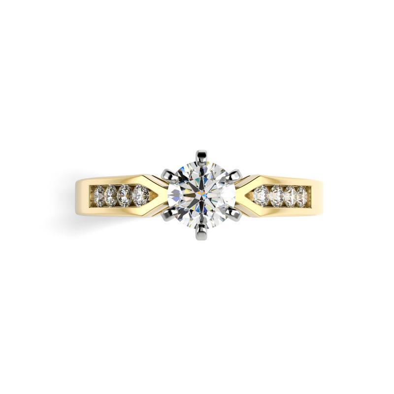 • die atypische Ringschiene ist mit einer Reihe glitzernder Edelsteine verziert, die die Schönheit des zentralen Steins unterstreichen