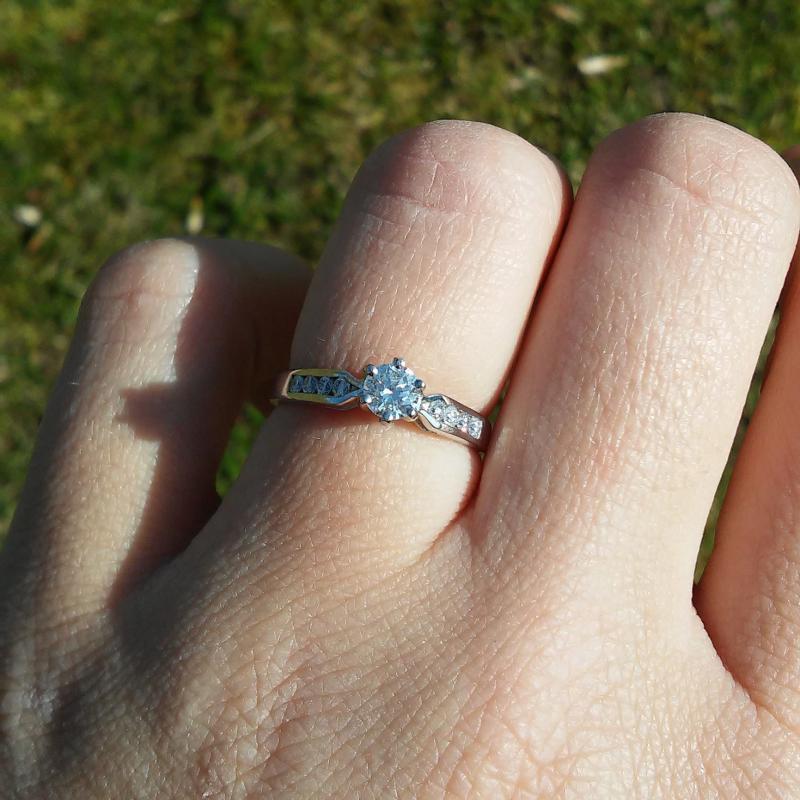 • der luxuriöse Ring wird von einem unübersehbaren Diamanten dominiert