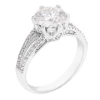 • dem Ring dominiert der glitzernde Moissanit, der eingehüllt ist in eine Aura aus Diamanten und gekrönt wird von den fantasievollen Formen der ornamentellen Ringschiene