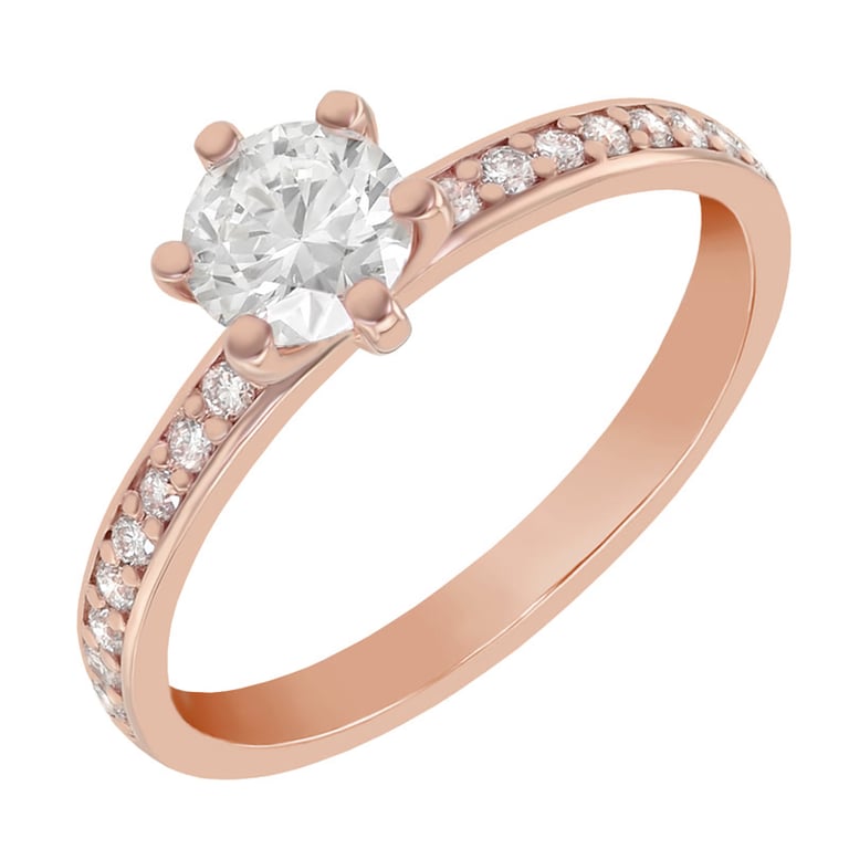 • die beeindruckende Schönheit des zentralen Diamanten wird durch die kleinen Edelsteine in der Ringschiene noch verstärkt
