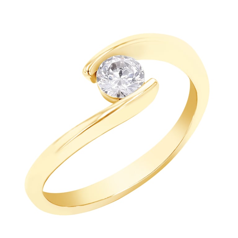 • der goldene Verlobungsring mit Moissanit ist zart wie frisch gefallener Schnee